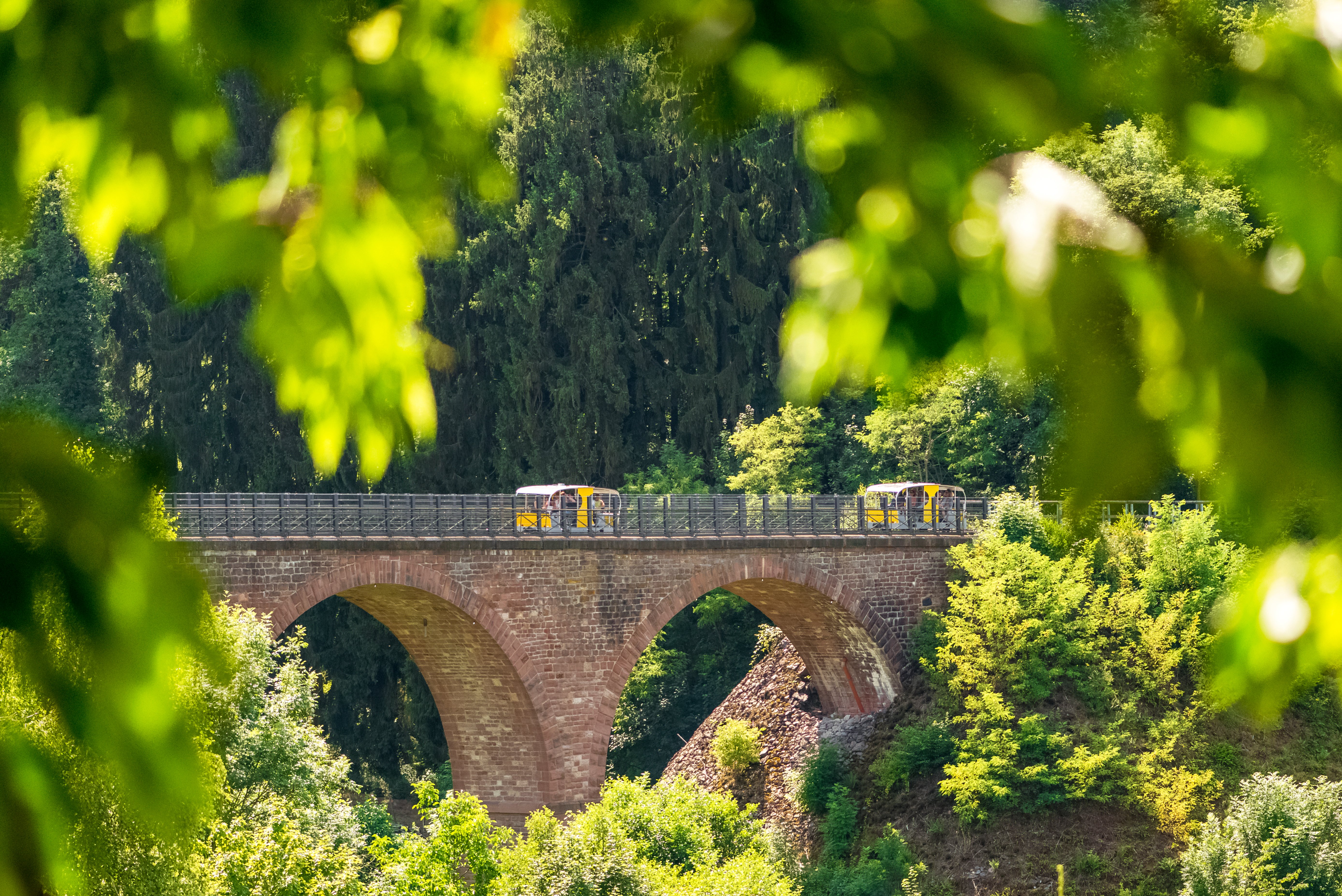 BITTE EINSTEIGEN! Die Fahrt mit der weltweit ersten Solardraisine kann beginnen. Ganz egal, ob Sie mit Freunden, der ganzen Familie oder Kollegen einen außergewöhnlichen Ausflug planen. die Fahrt mit der Solardraisine verspricht Ihnen ein einmaliges Fahr- und Freizeitvergnügen. Die Fahrt führt Sie über drei große Viadukte und durch zwei Tunnel. eine wunderschöne Landschaft mit atemberaubenden Ausblicken ist Ihnen garantiert.
